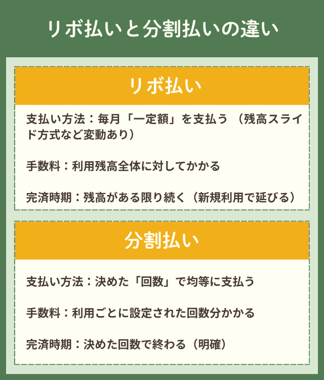 | 完済時期 | 残高がある限り続く(新規利用で延びる) | 決めた回数で終わる(明確) |