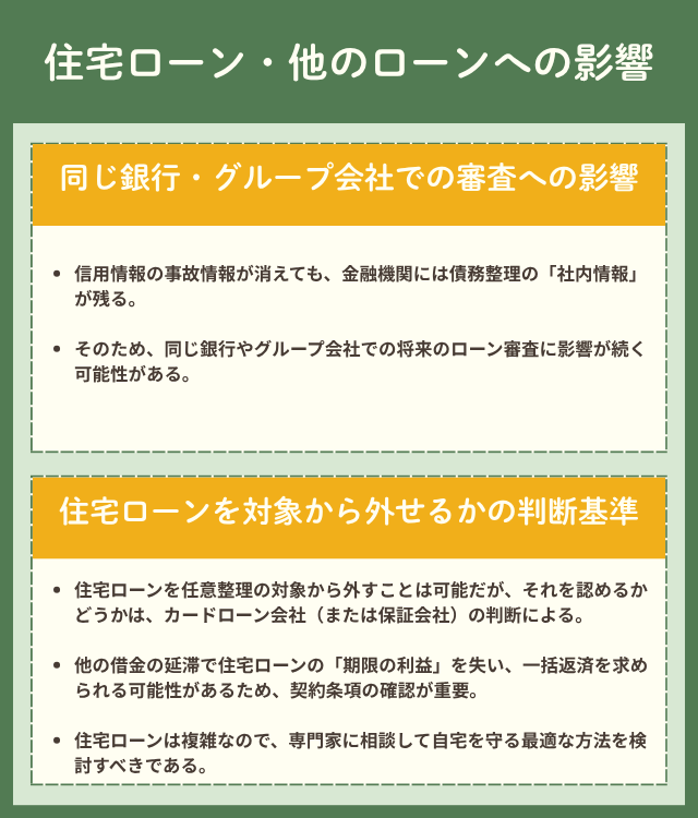 - 住宅ローンなど他のローンへの影響
