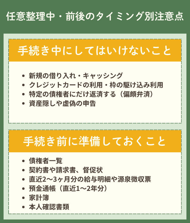 - 手続きの前後で「やってはいけないこと」「準備すべきこと」