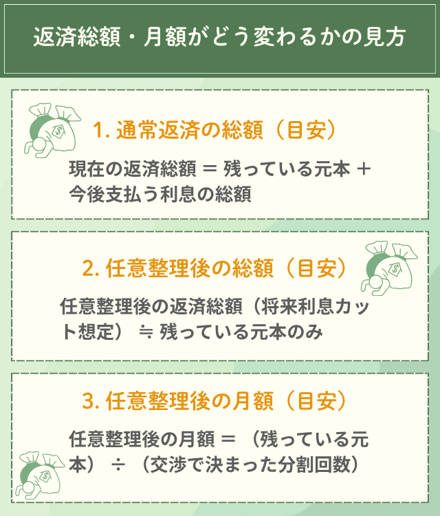 - 任意整理を選んだ場合の、月々の返済額の「目安」